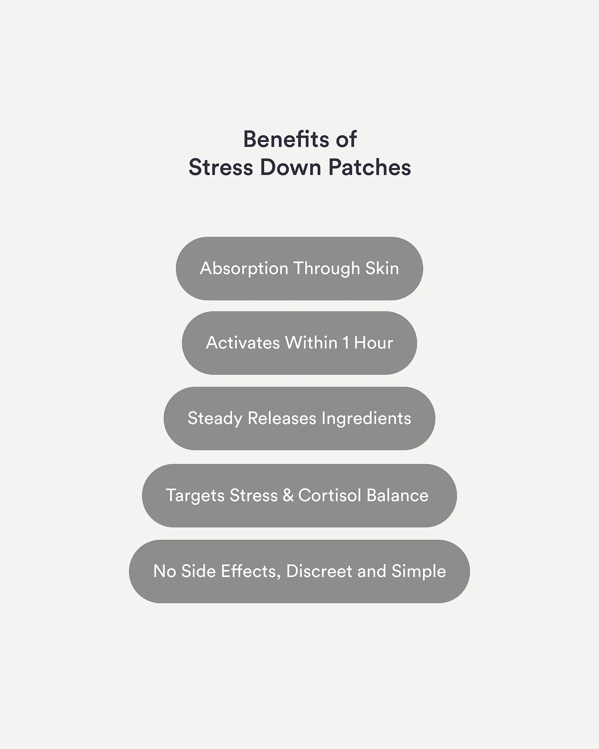 Feeling overwhelmed by modern stress? Try our Stress Down Extra Strong Patches. The formula works to support steady cortisol levels, help maintain a steady mood, and promote calm energy throughout the day. Say goodbye to feeling anxious, drained, or foggy, and enjoy a natural sense of balance and focus. Easy to use and highly effective, they’re your go-to solution for managing the pressures of modern life.